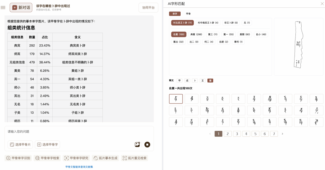 10月29日,专为甲骨文研究场景打造的AI智能体“殷契行止”在安阳殷墟博物馆发布。该智能体由安阳师范学院甲骨文信息处理教育部重点实验室联合腾讯SSV数字文化实验室等众多机构共同研发,集成了甲骨单字识别、甲骨单字检索、甲骨单字研究、拓片摹本生成和拓片重见检索五大核心功能,面向大众免费使用。同时构建全球规模最大的甲骨文多模态数据集,包含143万个甲骨文字形数据、1.5万片甲骨多模态数据、3000篇研究文献等。目前,已通过“全球甲骨文数字化回归”项目完成韩、德、法等国甲骨文数据采集,950片流失海外的甲骨通过数字化手段“回归”。
